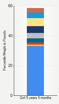 This chart shows weight percentiles, according to the CDC, for girls 1 year 10 months of age. To determine an individual's percentile, find the range that includes their weight. This percentile is not a reflection of optimal weight for an individual, it is only for comparing against a population sample. Use the navigation links above the summary chart to view the weight chart for a different age, or to switch between boys and girls or pounds and kilograms.