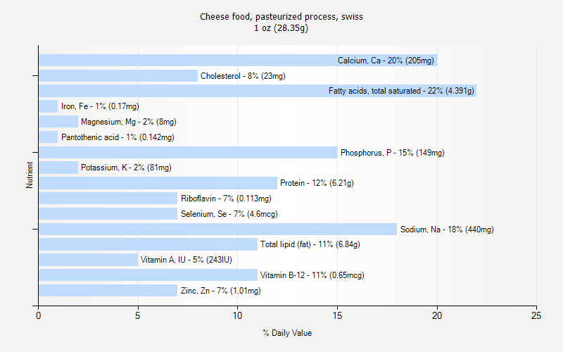 Alanine 0.156 gArginine 0.260 gAsh 1.64 gAspartic acid 0.382 gCalcium, Ca 205 mgCarbohydrate, by difference 1.28 gCholesterol 23 mgCopper, Cu 0.009 mgCystine 0.040 gEnergy 92 kcalEnergy 383 kjFatty acids, total monounsaturated 1.928 gFatty acids, total polyunsaturated 0.170 gFatty acids, total saturated 4.391 gFiber, total dietary 0.0 gFolate, DFE 2 mcg_DFEFolate, food 2 mcgFolate, total 2 mcgFolic acid 0 mcgGlutamic acid 1.290 gGlycine 0.102 gHistidine 0.253 gIron, Fe 0.17 mgIsoleucine 0.287 gLeucine 0.549 gLysine 0.617 gMagnesium, Mg 8 mgManganese, Mn 0.003 mgMethionine 0.161 gNiacin 0.029 mgPantothenic acid 0.142 mgPhenylalanine 0.316 gPhosphorus, P 149 mgPotassium, K 81 mgProline 0.632 gProtein 6.21 gRetinol 66 mcgRiboflavin 0.113 mgSelenium, Se 4.6 mcgSerine 0.300 gSodium, Na 440 mgThiamin 0.004 mgThreonine 0.202 gTotal lipid (fat) 6.84 gTryptophan 0.090 gTyrosine 0.340 gValine 0.372 gVitamin A, IU 243 IUVitamin A, RAE 67 mcg_RAEVitamin B-12 0.65 mcgVitamin B-6 0.010 mgVitamin C, total ascorbic acid 0.0 mgWater 12.38 gZinc, Zn 1.01 mg10:0 0.156 g12:0 0.155 g14:0 0.764 g16:0 1.967 g16:1 undifferentiated 0.185 g18:0 0.712 g18:1 undifferentiated 1.613 g18:2 undifferentiated 0.094 g18:3 undifferentiated 0.077 g18:4 0.000 g20:1 0.000 g20:5 n-3 0.000 g22:1 undifferentiated 0.000 g22:5 n-3 0.000 g22:6 n-3 0.000 g4:0 0.223 g6:0 0.134 g8:0 0.075 g