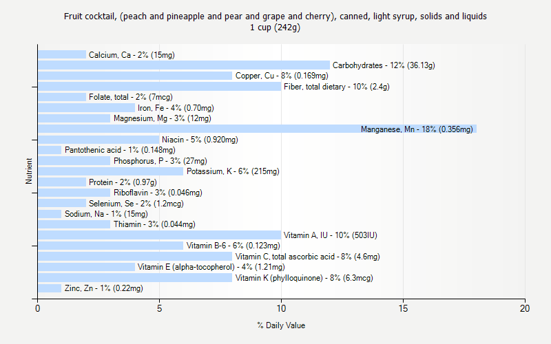 Alcohol, ethyl 0.0 gAsh 0.56 gCaffeine 0 mgCalcium, Ca 15 mgCarbohydrate, by difference 36.13 gCarotene, alpha 0 mcgCarotene, beta 252 mcgCholesterol 0 mgCholine, total 9.0 mgCopper, Cu 0.169 mgCryptoxanthin, beta 94 mcgEnergy 576 kjEnergy 138 kcalFatty acids, total monounsaturated 0.034 gFatty acids, total polyunsaturated 0.075 gFatty acids, total saturated 0.024 gFiber, total dietary 2.4 gFolate, DFE 7 mcg_DFEFolate, food 7 mcgFolate, total 7 mcgFolic acid 0 mcgIron, Fe 0.70 mgLutein + zeaxanthin 182 mcgLycopene 0 mcgMagnesium, Mg 12 mgManganese, Mn 0.356 mgNiacin 0.920 mgPantothenic acid 0.148 mgPhosphorus, P 27 mgPotassium, K 215 mgProtein 0.97 gRetinol 0 mcgRiboflavin 0.046 mgSelenium, Se 1.2 mcgSodium, Na 15 mgSugars, total 33.71 gTheobromine 0 mgThiamin 0.044 mgTocopherol, beta 0.00 mgTocopherol, delta 0.00 mgTocopherol, gamma 0.00 mgTotal lipid (fat) 0.17 gVitamin A, IU 503 IUVitamin A, RAE 24 mcg_RAEVitamin B-12 0.00 mcgVitamin B-12, added 0.00 mcgVitamin B-6 0.123 mgVitamin C, total ascorbic acid 4.6 mgVitamin E (alpha-tocopherol) 1.21 mgVitamin E, added 0.00 mgVitamin K (phylloquinone) 6.3 mcgWater 204.18 gZinc, Zn 0.22 mg10:0 0.000 g12:0 0.000 g14:0 0.000 g16:0 0.017 g16:1 undifferentiated 0.000 g18:0 0.007 g18:1 undifferentiated 0.034 g18:2 undifferentiated 0.065 g18:3 undifferentiated 0.010 g18:4 0.000 g20:1 0.000 g20:4 undifferentiated 0.000 g20:5 n-3 0.000 g22:1 undifferentiated 0.000 g22:5 n-3 0.000 g22:6 n-3 0.000 g4:0 0.000 g6:0 0.000 g8:0 0.000 g