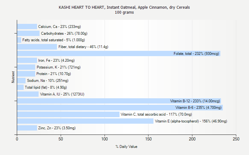 Ash 0.47 gCalcium, Ca 100 mgCarbohydrate, by difference 33.54 gCarotene, beta 329 mcgCholesterol 0 mgEnergy 161 kcalFatty acids, total monounsaturated 0.731 gFatty acids, total polyunsaturated 0.946 gFatty acids, total saturated 0.430 gFatty acids, total trans 0.000 gFiber, total dietary 4.9 gFolate, total 400 mcgIron, Fe 1.81 mgPotassium, K 310 mgProtein 4.60 gSodium, Na 108 mgSugars, total 12.04 gTotal lipid (fat) 2.11 gVitamin A, IU 547 IUVitamin A, RAE 28 mcg_RAEVitamin B-12 6.02 mcgVitamin B-6 2.021 mgVitamin C, total ascorbic acid 30.1 mgVitamin E (alpha-tocopherol) 20.17 mgWater 2.28 gZinc, Zn 1.50 mg