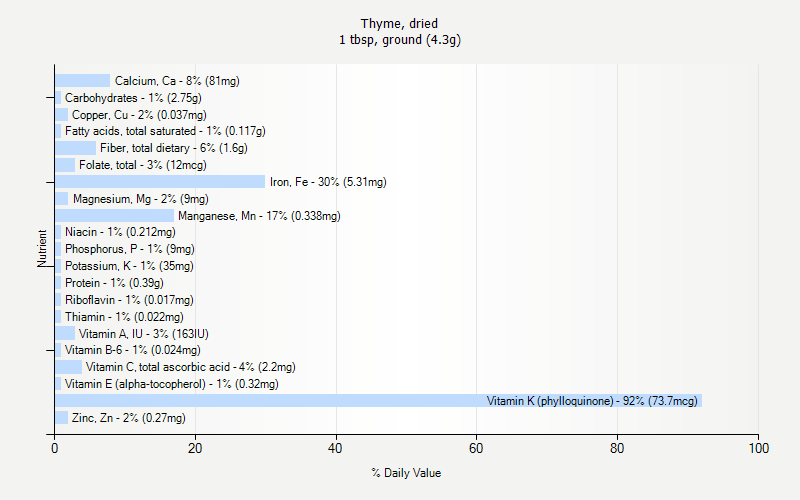 Alcohol, ethyl 0.0 gAsh 0.12 gCaffeine 0 mgCalcium, Ca 19 mgCarbohydrate, by difference 0.64 gCarotene, alpha 0 mcgCarotene, beta 23 mcgCholesterol 0 mgCholine, total 0.4 mgCopper, Cu 0.009 mgCryptoxanthin, beta 0 mcgEnergy 12 kjEnergy 3 kcalFatty acids, total monounsaturated 0.005 gFatty acids, total polyunsaturated 0.012 gFatty acids, total saturated 0.027 gFiber, total dietary 0.4 gFolate, DFE 3 mcg_DFEFolate, food 3 mcgFolate, total 3 mcgFolic acid 0 mcgIron, Fe 1.24 mgIsoleucine 0.005 gLeucine 0.004 gLutein + zeaxanthin 9 mcgLycopene 0 mcgLysine 0.002 gMagnesium, Mg 2 mgManganese, Mn 0.079 mgNiacin 0.049 mgPhosphorus, P 2 mgPhytosterols 2 mgPotassium, K 8 mgProtein 0.09 gRetinol 0 mcgRiboflavin 0.004 mgSelenium, Se 0.0 mcgSodium, Na 1 mgSugars, total 0.02 gTheobromine 0 mgThiamin 0.005 mgThreonine 0.003 gTotal lipid (fat) 0.07 gTryptophan 0.002 gValine 0.005 gVitamin A, IU 38 IUVitamin A, RAE 2 mcg_RAEVitamin B-12 0.00 mcgVitamin B-12, added 0.00 mcgVitamin B-6 0.006 mgVitamin C, total ascorbic acid 0.5 mgVitamin E (alpha-tocopherol) 0.07 mgVitamin E, added 0.00 mgVitamin K (phylloquinone) 17.1 mcgWater 0.08 gZinc, Zn 0.06 mg10:0 0.001 g12:0 0.002 g14:0 0.002 g16:0 0.017 g16:1 undifferentiated 0.000 g18:0 0.003 g18:1 undifferentiated 0.005 g18:2 undifferentiated 0.005 g18:3 undifferentiated 0.007 g18:4 0.000 g20:1 0.000 g20:4 undifferentiated 0.000 g20:5 n-3 0.000 g22:1 undifferentiated 0.000 g22:5 n-3 0.000 g22:6 n-3 0.000 g4:0 0.000 g6:0 0.000 g8:0 0.002 g