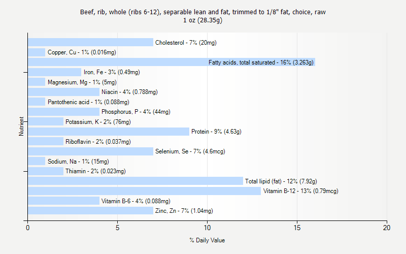 % Daily Value for Beef, rib, whole (ribs 6-12), separable lean and fat, trimmed to 1/8" fat, choice, raw 1 oz (28.35g)