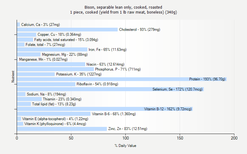 Complete Nutrition for 1 piece, cooked (yield from 1 lb raw meat, boneless) (340g)