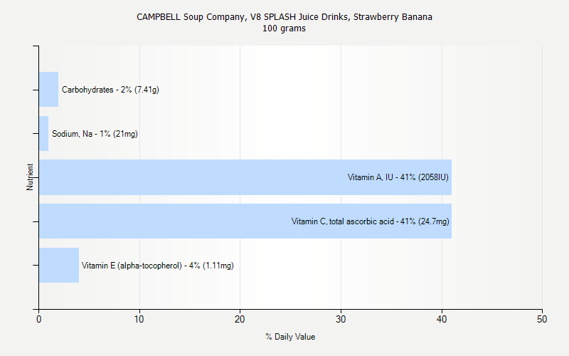 Ash 0.95 gCarbohydrate, by difference 18.01 gEnergy 294 kjEnergy 70 kcalPotassium, K 19 mgProtein 0.00 gSodium, Na 51 mgSugars, total 18.01 gTotal lipid (fat) 0.00 gVitamin A, IU 5001 IUVitamin C, total ascorbic acid 60.0 mgVitamin E (alpha-tocopherol) 2.70 mgWater 224.05 g