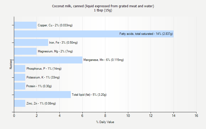 Alanine 0.233 gArginine 0.748 gAsh 2.19 gAspartic acid 0.445 gBetaine 0.0 mgCalcium, Ca 41 mgCarbohydrate, by difference 6.35 gCholesterol 0 mgCholine, total 19.2 mgCopper, Cu 0.504 mgCystine 0.090 gEnergy 445 kcalEnergy 1862 kjFatty acids, total monounsaturated 2.050 gFatty acids, total polyunsaturated 0.527 gFatty acids, total saturated 42.748 gFolate, DFE 32 mcg_DFEFolate, food 32 mcgFolate, total 32 mcgFolic acid 0 mcgGlutamic acid 1.044 gGlycine 0.217 gHistidine 0.104 gIron, Fe 7.46 mgIsoleucine 0.179 gLeucine 0.339 gLysine 0.201 gMagnesium, Mg 104 mgManganese, Mn 1.736 mgMethionine 0.086 gNiacin 1.440 mgPantothenic acid 0.346 mgPhenylalanine 0.231 gPhosphorus, P 217 mgPotassium, K 497 mgProline 0.188 gProtein 4.57 gRetinol 0 mcgRiboflavin 0.000 mgSerine 0.235 gSodium, Na 29 mgThiamin 0.050 mgThreonine 0.167 gTotal lipid (fat) 48.21 gTryptophan 0.054 gTyrosine 0.140 gValine 0.276 gVitamin A, IU 0 IUVitamin A, RAE 0 mcg_RAEVitamin B-12 0.00 mcgVitamin B-6 0.063 mgVitamin C, total ascorbic acid 2.3 mgWater 164.71 gZinc, Zn 1.27 mg10:0 2.683 g12:0 21.386 g14:0 8.443 g16:0 4.086 g18:0 2.495 g18:1 undifferentiated 2.050 g18:2 undifferentiated 0.527 g6:0 0.273 g8:0 3.376 g