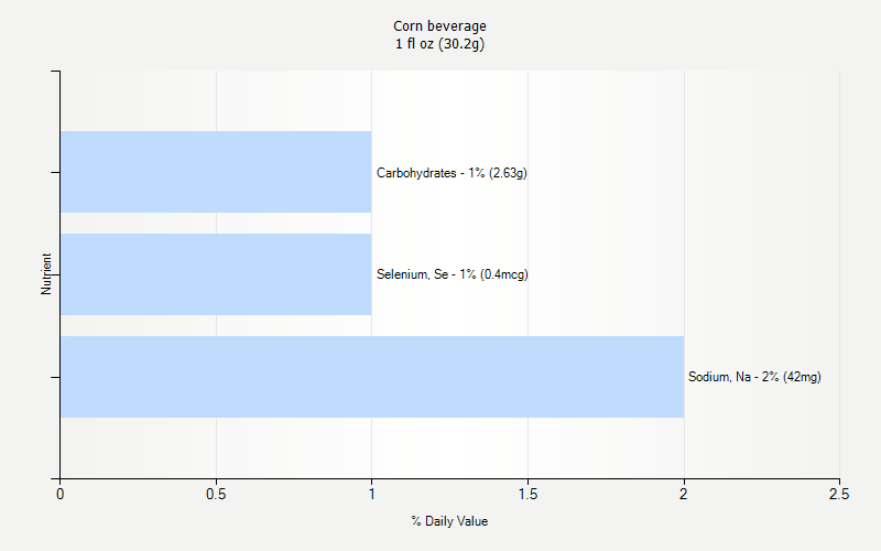 Alcohol, ethyl 0.0 gAsh 0.05 gCaffeine 0 mgCalcium, Ca 1 mgCarbohydrate, by difference 2.63 gCarotene, alpha 2 mcgCarotene, beta 3 mcgCholesterol 0 mgCholine, total 0.4 mgCopper, Cu 0.005 mgCryptoxanthin, beta 0 mcgEnergy 12 kcalEnergy 50 kjFatty acids, total monounsaturated 0.000 gFatty acids, total polyunsaturated 0.000 gFatty acids, total saturated 0.000 gFatty acids, total trans 0.000 gFiber, total dietary 0.1 gFolate, DFE 1 mcg_DFEFolate, food 1 mcgFolate, total 1 mcgFolic acid 0 mcgIron, Fe 0.04 mgLutein + zeaxanthin 45 mcgLycopene 0 mcgMagnesium, Mg 2 mgManganese, Mn 0.006 mgNiacin 0.033 mgPantothenic acid 0.009 mgPhosphorus, P 4 mgPotassium, K 5 mgProtein 0.24 gRetinol 0 mcgRiboflavin 0.002 mgSelenium, Se 0.4 mcgSodium, Na 42 mgSugars, total 0.05 gTheobromine 0 mgThiamin 0.005 mgTotal lipid (fat) 0.06 gVitamin A, IU 7 IUVitamin A, RAE 0 mcg_RAEVitamin B-12 0.00 mcgVitamin B-12, added 0.00 mcgVitamin B-6 0.007 mgVitamin C, total ascorbic acid 0.0 mgVitamin E (alpha-tocopherol) 0.01 mgVitamin E, added 0.00 mgVitamin K (phylloquinone) 0.0 mcgWater 27.23 gZinc, Zn 0.02 mg10:0 0.000 g12:0 0.000 g13:0 0.000 g14:0 0.000 g14:1 0.000 g15:0 0.000 g15:1 0.000 g16:0 0.000 g16:1 undifferentiated 0.000 g17:0 0.000 g17:1 0.000 g18:0 0.000 g18:1 undifferentiated 0.000 g18:2 undifferentiated 0.000 g18:3 undifferentiated 0.000 g18:4 0.000 g20:0 0.000 g20:1 0.000 g20:2 n-6 c,c 0.000 g20:3 undifferentiated 0.000 g20:4 undifferentiated 0.000 g20:5 n-3 0.000 g21:5 0.000 g22:0 0.000 g22:1 undifferentiated 0.000 g22:4 0.000 g22:5 n-3 0.000 g22:6 n-3 0.000 g24:0 0.000 g24:1 c 0.000 g4:0 0.000 g6:0 0.000 g8:0 0.000 g