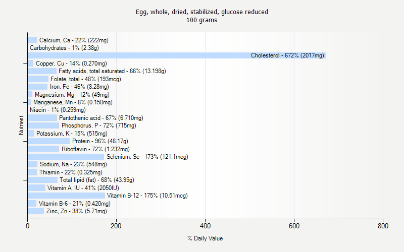 Alanine 2.391 gArginine 2.621 gAsh 3.09 gAspartic acid 4.061 gCalcium, Ca 189 mgCarbohydrate, by difference 2.02 gCholesterol 1714 mgCopper, Cu 0.230 mgCystine 0.976 gEnergy 2188 kjEnergy 523 kcalFatty acids, total monounsaturated 14.929 gFatty acids, total polyunsaturated 4.856 gFatty acids, total saturated 11.218 gFiber, total dietary 0.0 gFolate, DFE 164 mcg_DFEFolate, food 164 mcgFolate, total 164 mcgFolic acid 0 mcgGlutamic acid 5.215 gGlycine 1.363 gHistidine 0.989 gIron, Fe 7.04 mgIsoleucine 2.562 gLeucine 3.596 gLysine 2.764 gMagnesium, Mg 42 mgManganese, Mn 0.128 mgMethionine 1.323 gNiacin 0.220 mgPantothenic acid 5.704 mgPhenylalanine 2.313 gPhosphorus, P 608 mgPotassium, K 438 mgProline 1.624 gProtein 40.94 gRetinol 524 mcgRiboflavin 1.047 mgSelenium, Se 102.9 mcgSerine 3.112 gSodium, Na 466 mgThiamin 0.276 mgThreonine 2.011 gTotal lipid (fat) 37.36 gTryptophan 0.655 gTyrosine 1.703 gValine 2.948 gVitamin A, IU 1742 IUVitamin A, RAE 524 mcg_RAEVitamin B-12 8.93 mcgVitamin B-6 0.357 mgVitamin C, total ascorbic acid 0.0 mgWater 1.59 gZinc, Zn 4.85 mg10:0 0.000 g12:0 0.000 g14:0 0.102 g16:0 8.248 g16:1 undifferentiated 1.244 g18:0 2.868 g18:1 undifferentiated 13.687 g18:2 undifferentiated 4.149 g18:3 undifferentiated 0.105 g20:4 undifferentiated 0.313 g4:0 0.000 g6:0 0.000 g8:0 0.000 g
