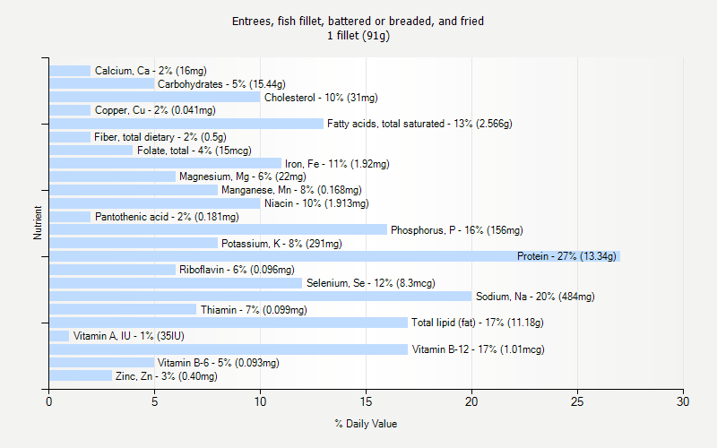 % Daily Value for Entrees, fish fillet, battered or breaded, and fried 1 fillet (91g)