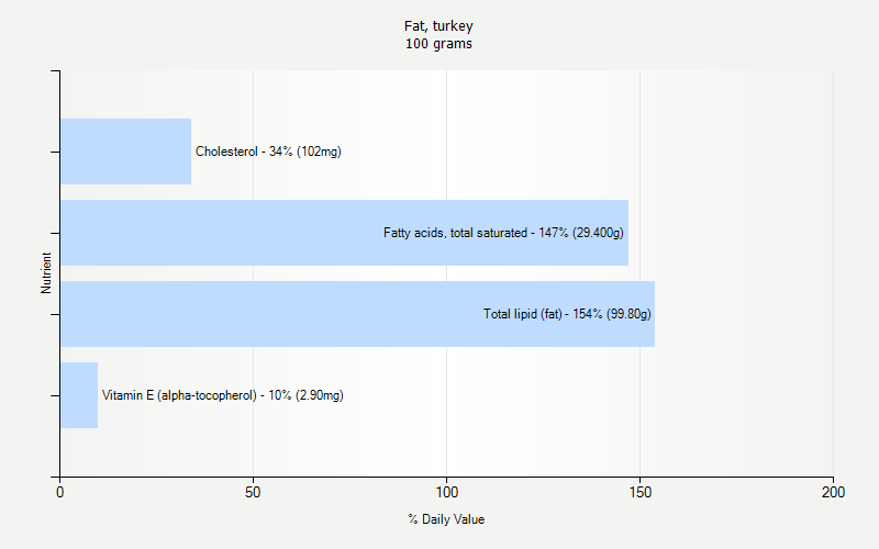 Alanine 0.000 gAlcohol, ethyl 0.0 gArginine 0.000 gAsh 0.00 gAspartic acid 0.000 gCaffeine 0 mgCalcium, Ca 0 mgCarbohydrate, by difference 0.00 gCarotene, alpha 0 mcgCarotene, beta 0 mcgCholesterol 209 mgCholine, total 250.9 mgCopper, Cu 0.000 mgCryptoxanthin, beta 0 mcgCystine 0.000 gEnergy 7722 kjEnergy 1845 kcalFatty acids, total monounsaturated 87.945 gFatty acids, total polyunsaturated 47.355 gFatty acids, total saturated 60.270 gFiber, total dietary 0.0 gFolate, DFE 0 mcg_DFEFolate, food 0 mcgFolate, total 0 mcgFolic acid 0 mcgGlutamic acid 0.000 gGlycine 0.000 gHistidine 0.000 gIron, Fe 0.00 mgIsoleucine 0.000 gLeucine 0.000 gLutein + zeaxanthin 0 mcgLycopene 0 mcgLysine 0.000 gMagnesium, Mg 0 mgMethionine 0.000 gNiacin 0.000 mgPantothenic acid 0.000 mgPhenylalanine 0.000 gPhosphorus, P 0 mgPhytosterols 0 mgPotassium, K 0 mgProline 0.000 gProtein 0.00 gRetinol 0 mcgRiboflavin 0.000 mgSelenium, Se 0.4 mcgSerine 0.000 gSodium, Na 0 mgSugars, total 0.00 gTheobromine 0 mgThiamin 0.000 mgThreonine 0.000 gTotal lipid (fat) 204.59 gTryptophan 0.000 gTyrosine 0.000 gValine 0.000 gVitamin A, IU 0 IUVitamin A, RAE 0 mcg_RAEVitamin B-12 0.00 mcgVitamin B-12, added 0.00 mcgVitamin B-6 0.000 mgVitamin C, total ascorbic acid 0.0 mgVitamin E (alpha-tocopherol) 5.94 mgVitamin E, added 0.00 mgVitamin K (phylloquinone) 0.0 mcgWater 0.41 gZinc, Zn 0.00 mg10:0 0.000 g12:0 0.000 g14:0 1.845 g16:0 42.230 g16:1 undifferentiated 12.300 g18:0 12.710 g18:1 undifferentiated 73.595 g18:2 undifferentiated 43.460 g18:3 undifferentiated 2.870 g18:4 0.000 g20:1 0.000 g20:4 undifferentiated 0.615 g20:5 n-3 0.000 g22:1 undifferentiated 0.000 g22:5 n-3 0.000 g22:6 n-3 0.000 g4:0 0.000 g6:0 0.000 g8:0 0.000 g