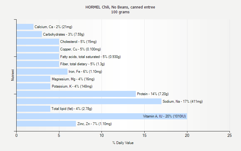 Ash 3.49 gCalcium, Ca 50 mgCarbohydrate, by difference 17.91 gCholesterol 35 mgCopper, Cu 0.236 mgEnergy 809 kjEnergy 194 kcalFatty acids, total monounsaturated 2.242 gFatty acids, total polyunsaturated 0.850 gFatty acids, total saturated 2.195 gFiber, total dietary 3.1 gIron, Fe 2.60 mgMagnesium, Mg 38 mgPotassium, K 349 mgProtein 16.99 gSodium, Na 970 mgSugars, total 3.35 gTotal lipid (fat) 6.56 gVitamin A, IU 2384 IUVitamin C, total ascorbic acid 0.0 mgWater 191.63 gZinc, Zn 2.60 mg12:0 0.000 g14:0 0.142 g16:0 1.298 g16:1 undifferentiated 0.212 g18:0 0.708 g18:1 undifferentiated 2.030 g18:2 undifferentiated 0.755 g18:3 undifferentiated 0.094 g