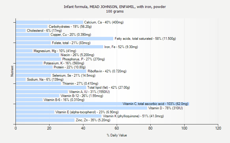 Alcohol, ethyl 0.0 gAsh 0.22 gCaffeine 0 mgCalcium, Ca 33 mgCarbohydrate, by difference 4.66 gCarotene, alpha 0 mcgCarotene, beta 0 mcgCholesterol 1 mgCholine, total 10.3 mgCopper, Cu 0.032 mgCryptoxanthin, beta 0 mcgEnergy 181 kjEnergy 43 kcalFatty acids, total monounsaturated 0.855 gFatty acids, total polyunsaturated 0.432 gFatty acids, total saturated 0.954 gFiber, total dietary 0.0 gFolate, DFE 12 mcg_DFEFolate, food 0 mcgFolate, total 7 mcgFolic acid 7 mcgIron, Fe 0.77 mgLactose 4.65 gLutein + zeaxanthin 0 mcgLycopene 0 mcgMagnesium, Mg 3 mgNiacin 0.432 mgPhosphorus, P 22 mgPotassium, K 46 mgProtein 0.90 gRetinol 39 mcgRiboflavin 0.060 mgSelenium, Se 1.2 mcgSodium, Na 12 mgSugars, total 4.65 gTheobromine 0 mgThiamin 0.034 mgTotal lipid (fat) 2.24 gVitamin A, IU 129 IUVitamin A, RAE 39 mcg_RAEVitamin B-12 0.13 mcgVitamin B-12, added 0.13 mcgVitamin B-6 0.026 mgVitamin C, total ascorbic acid 5.1 mgVitamin D 26 IUVitamin E (alpha-tocopherol) 0.57 mgVitamin E, added 0.57 mgVitamin K (phylloquinone) 3.4 mcgWater 0.27 gZinc, Zn 0.43 mg10:0 0.027 g12:0 0.208 g14:0 0.092 g16:0 0.490 g16:1 undifferentiated 0.000 g18:0 0.090 g18:1 undifferentiated 0.855 g18:2 undifferentiated 0.390 g18:3 undifferentiated 0.037 g18:4 0.000 g20:1 0.000 g20:4 undifferentiated 0.000 g20:5 n-3 0.000 g22:1 undifferentiated 0.000 g22:5 n-3 0.000 g22:6 n-3 0.000 g4:0 0.000 g6:0 0.002 g8:0 0.036 g
