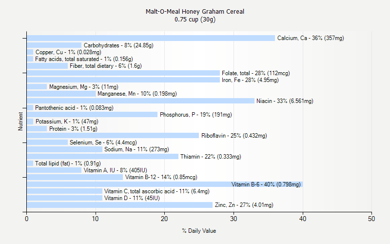 Alcohol, ethyl 0.0 gAsh 1.66 gCaffeine 0 mgCalcium, Ca 357 mgCarbohydrate, by difference 24.85 gCarotene, alpha 0 mcgCarotene, beta 0 mcgCholesterol 0 mgCopper, Cu 0.028 mgCryptoxanthin, beta 0 mcgEnergy 114 kcalEnergy 475 kjFatty acids, total monounsaturated 0.333 gFatty acids, total polyunsaturated 0.375 gFatty acids, total saturated 0.156 gFatty acids, total trans 0.075 gFiber, total dietary 1.6 gFolate, DFE 186 mcg_DFEFolate, food 6 mcgFolate, total 112 mcgFolic acid 106 mcgIron, Fe 4.95 mgLutein + zeaxanthin 0 mcgLycopene 0 mcgMagnesium, Mg 11 mgManganese, Mn 0.198 mgNiacin 6.561 mgPantothenic acid 0.083 mgPhosphorus, P 191 mgPotassium, K 47 mgProtein 1.51 gRetinol 122 mcgRiboflavin 0.432 mgSelenium, Se 4.4 mcgSodium, Na 273 mgSugars, total 9.31 gTheobromine 0 mgThiamin 0.333 mgTotal lipid (fat) 0.91 gVitamin A, IU 405 IUVitamin A, RAE 122 mcg_RAEVitamin B-12 0.85 mcgVitamin B-6 0.798 mgVitamin C, total ascorbic acid 6.4 mgVitamin D 45 IUVitamin E (alpha-tocopherol) 0.11 mgVitamin K (phylloquinone) 0.3 mcgWater 1.08 gZinc, Zn 4.01 mg10:0 0.000 g12:0 0.000 g14:0 0.001 g15:0 0.000 g16:0 0.082 g16:1 undifferentiated 0.001 g17:0 0.001 g18:0 0.067 g18:1 undifferentiated 0.332 g18:2 undifferentiated 0.356 g18:3 undifferentiated 0.011 g18:4 0.000 g20:1 0.000 g20:4 undifferentiated 0.000 g20:5 n-3 0.000 g22:1 undifferentiated 0.000 g22:5 n-3 0.000 g22:6 n-3 0.000 g4:0 0.000 g6:0 0.000 g8:0 0.001 g