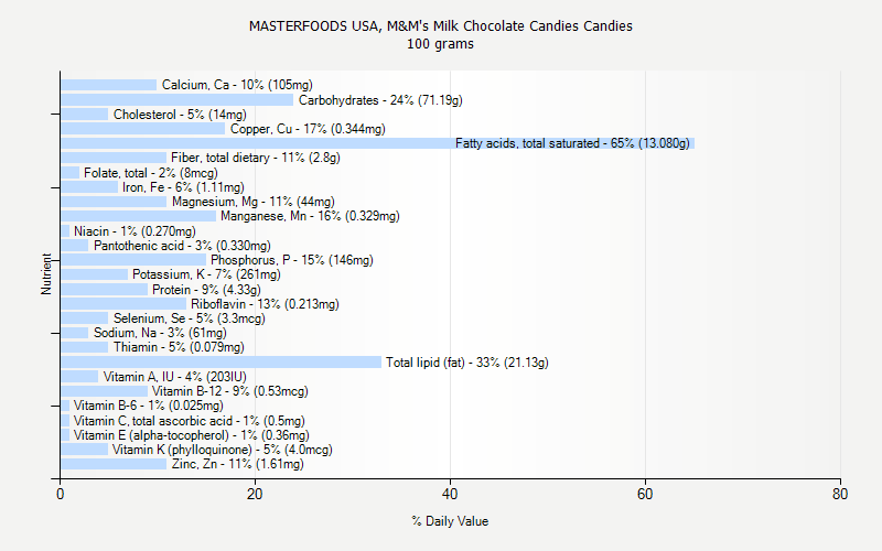 Alcohol, ethyl 0.0 gAsh 3.39 gBetaine 1.7 mgCaffeine 29 mgCalcium, Ca 218 mgCarbohydrate, by difference 148.08 gCarotene, alpha 0 mcgCarotene, beta 0 mcgCholesterol 29 mgCholine, total 45.1 mgCopper, Cu 0.716 mgCryptoxanthin, beta 0 mcgEnergy 1023 kcalEnergy 4279 kjFatty acids, total monounsaturated 10.781 gFatty acids, total polyunsaturated 1.916 gFatty acids, total saturated 27.206 gFatty acids, total trans 0.347 gFiber, total dietary 5.8 gFluoride, F 36.4 mcgFolate, DFE 17 mcg_DFEFolate, food 17 mcgFolate, total 17 mcgFolic acid 0 mcgIron, Fe 2.31 mgLutein + zeaxanthin 0 mcgLycopene 0 mcgMagnesium, Mg 92 mgManganese, Mn 0.684 mgNiacin 0.562 mgPantothenic acid 0.686 mgPhosphorus, P 304 mgPotassium, K 543 mgProtein 9.01 gRetinol 116 mcgRiboflavin 0.443 mgSelenium, Se 6.9 mcgSodium, Na 127 mgSugars, total 132.45 gTheobromine 297 mgThiamin 0.164 mgTocopherol, beta 0.00 mgTocopherol, gamma 1.33 mgTotal lipid (fat) 43.95 gVitamin A, IU 422 IUVitamin A, RAE 116 mcg_RAEVitamin B-12 1.10 mcgVitamin B-12, added 0.00 mcgVitamin B-6 0.052 mgVitamin C, total ascorbic acid 1.0 mgVitamin E (alpha-tocopherol) 0.75 mgVitamin E, added 0.00 mgVitamin K (phylloquinone) 8.3 mcgWater 3.54 gZinc, Zn 3.35 mg10:0 0.376 g12:0 0.414 g13:0 0.000 g14:0 1.267 g14:1 0.160 g15:0 0.131 g15:1 0.000 g16:0 11.367 g16:1 undifferentiated 0.306 g17:0 0.125 g17:1 0.046 g18:0 11.658 g18:1 undifferentiated 10.269 g18:2 undifferentiated 1.797 g18:3 undifferentiated 0.119 g18:4 0.000 g20:0 0.327 g20:1 0.000 g20:2 n-6 c,c 0.000 g20:3 undifferentiated 0.000 g20:4 undifferentiated 0.000 g20:5 n-3 0.000 g22:0 0.035 g22:1 undifferentiated 0.000 g22:5 n-3 0.000 g22:6 n-3 0.000 g24:0 0.000 g24:1 c 0.000 g4:0 0.961 g6:0 0.347 g8:0 0.198 g