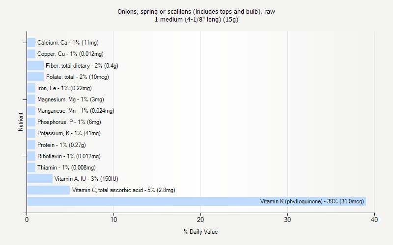 Alanine 0.082 gAlcohol, ethyl 0.0 gArginine 0.132 gAsh 0.81 gAspartic acid 0.169 gCaffeine 0 mgCalcium, Ca 72 mgCarbohydrate, by difference 7.34 gCarotene, alpha 0 mcgCarotene, beta 598 mcgCholesterol 0 mgCholine, total 5.7 mgCopper, Cu 0.083 mgCryptoxanthin, beta 0 mcgEnergy 32 kcalEnergy 135 kjFatty acids, total monounsaturated 0.027 gFatty acids, total polyunsaturated 0.074 gFatty acids, total saturated 0.032 gFiber, total dietary 2.6 gFolate, DFE 64 mcg_DFEFolate, food 64 mcgFolate, total 64 mcgFolic acid 0 mcgGlutamic acid 0.378 gGlycine 0.091 gHistidine 0.032 gIron, Fe 1.48 mgIsoleucine 0.077 gLeucine 0.109 gLutein + zeaxanthin 1137 mcgLycopene 0 mcgLysine 0.091 gMagnesium, Mg 20 mgManganese, Mn 0.160 mgMethionine 0.020 gNiacin 0.525 mgPantothenic acid 0.075 mgPhenylalanine 0.059 gPhosphorus, P 37 mgPotassium, K 276 mgProline 0.121 gProtein 1.83 gRetinol 0 mcgRiboflavin 0.080 mgSelenium, Se 0.6 mcgSerine 0.082 gSodium, Na 16 mgSugars, total 2.33 gTheobromine 0 mgThiamin 0.055 mgThreonine 0.072 gTotal lipid (fat) 0.19 gTryptophan 0.020 gTyrosine 0.053 gValine 0.081 gVitamin A, IU 997 IUVitamin A, RAE 50 mcg_RAEVitamin B-12 0.00 mcgVitamin B-12, added 0.00 mcgVitamin B-6 0.061 mgVitamin C, total ascorbic acid 18.8 mgVitamin E (alpha-tocopherol) 0.55 mgVitamin E, added 0.00 mgVitamin K (phylloquinone) 207.0 mcgWater 89.83 gZinc, Zn 0.39 mg10:0 0.000 g12:0 0.000 g14:0 0.001 g16:0 0.028 g16:1 undifferentiated 0.000 g18:0 0.003 g18:1 undifferentiated 0.027 g18:2 undifferentiated 0.070 g18:3 undifferentiated 0.004 g18:4 0.000 g20:1 0.000 g20:4 undifferentiated 0.000 g20:5 n-3 0.000 g22:1 undifferentiated 0.000 g22:5 n-3 0.000 g22:6 n-3 0.000 g4:0 0.000 g6:0 0.000 g8:0 0.000 g