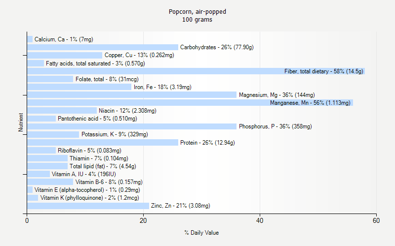 Alanine 0.072 gAlcohol, ethyl 0.0 gArginine 0.048 gAsh 0.11 gAspartic acid 0.067 gBetaine 0.1 mgCaffeine 0 mgCalcium, Ca 1 mgCarbohydrate, by difference 6.23 gCarotene, alpha 5 mcgCarotene, beta 7 mcgCholesterol 0 mgCholine, total 1.7 mgCopper, Cu 0.021 mgCryptoxanthin, beta 0 mcgCystine 0.017 gEnergy 31 kcalEnergy 130 kjFatty acids, total monounsaturated 0.088 gFatty acids, total polyunsaturated 0.152 gFatty acids, total saturated 0.046 gFiber, total dietary 1.2 gFolate, DFE 2 mcg_DFEFolate, food 2 mcgFolate, total 2 mcgFolic acid 0 mcgFructose 0.01 gGalactose 0.00 gGlucose (dextrose) 0.01 gGlutamic acid 0.180 gGlycine 0.039 gHistidine 0.029 gIron, Fe 0.26 mgIsoleucine 0.034 gLactose 0.00 gLeucine 0.118 gLutein + zeaxanthin 116 mcgLycopene 0 mcgLysine 0.027 gMagnesium, Mg 12 mgMaltose 0.00 gManganese, Mn 0.089 mgMethionine 0.020 gNiacin 0.185 mgPantothenic acid 0.041 mgPhenylalanine 0.047 gPhosphorus, P 29 mgPotassium, K 26 mgProline 0.084 gProtein 1.04 gRetinol 0 mcgRiboflavin 0.007 mgSelenium, Se 0.0 mcgSerine 0.046 gSodium, Na 1 mgStarch 4.35 gSucrose 0.06 gSugars, total 0.07 gTheobromine 0 mgThiamin 0.008 mgThreonine 0.036 gTotal lipid (fat) 0.36 gTryptophan 0.007 gTyrosine 0.039 gValine 0.049 gVitamin A, IU 16 IUVitamin A, RAE 1 mcg_RAEVitamin B-12 0.00 mcgVitamin B-12, added 0.00 mcgVitamin B-6 0.013 mgVitamin C, total ascorbic acid 0.0 mgVitamin E (alpha-tocopherol) 0.02 mgVitamin E, added 0.00 mgVitamin K (phylloquinone) 0.1 mcgWater 0.27 gZinc, Zn 0.25 mg10:0 0.000 g12:0 0.000 g14:0 0.000 g14:1 0.000 g15:0 0.000 g15:1 0.000 g16:0 0.047 g16:1 undifferentiated 0.000 g17:0 0.000 g17:1 0.000 g18:0 0.007 g18:1 undifferentiated 0.082 g18:2 undifferentiated 0.200 g18:3 n-6 c,c,c 0.000 g18:3 undifferentiated 0.005 g18:4 0.000 g20:0 0.001 g20:1 0.001 g20:2 n-6 c,c 0.000 g20:3 undifferentiated 0.000 g20:4 undifferentiated 0.000 g20:5 n-3 0.000 g22:0 0.001 g22:1 undifferentiated 0.000 g22:5 n-3 0.000 g22:6 n-3 0.000 g4:0 0.000 g6:0 0.000 g8:0 0.000 g