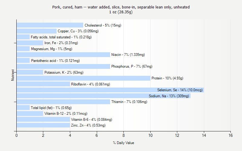 % Daily Value for Pork, cured, ham -- water added, slice, bone-in, separable lean only, unheated 1 oz (28.35g)