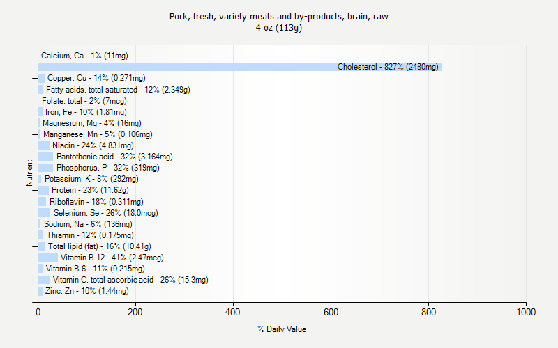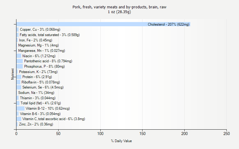Arginine 0.153 gAsh 0.32 gAspartic acid 0.291 gCalcium, Ca 3 mgCarbohydrate, by difference 0.00 gCholesterol 622 mgCopper, Cu 0.068 mgEnergy 36 kcalEnergy 151 kjFatty acids, total monounsaturated 0.470 gFatty acids, total polyunsaturated 0.405 gFatty acids, total saturated 0.589 gFiber, total dietary 0.0 gFolate, DFE 2 mcg_DFEFolate, food 2 mcgFolate, total 2 mcgFolic acid 0 mcgGlutamic acid 0.341 gGlycine 0.140 gHistidine 0.078 gIron, Fe 0.45 mgIsoleucine 0.135 gLeucine 0.254 gLysine 0.229 gMagnesium, Mg 4 mgManganese, Mn 0.027 mgMethionine 0.058 gNiacin 1.212 mgPantothenic acid 0.794 mgPhenylalanine 0.148 gPhosphorus, P 80 mgPotassium, K 73 mgProtein 2.91 gRetinol 0 mcgRiboflavin 0.078 mgSelenium, Se 4.5 mcgSodium, Na 34 mgThiamin 0.044 mgThreonine 0.136 gTotal lipid (fat) 2.61 gTryptophan 0.037 gTyrosine 0.122 gValine 0.166 gVitamin A, IU 0 IUVitamin A, RAE 0 mcg_RAEVitamin B-12 0.62 mcgVitamin B-6 0.054 mgVitamin C, total ascorbic acid 3.8 mgWater 22.22 gZinc, Zn 0.36 mg14:0 0.011 g16:0 0.292 g16:1 undifferentiated 0.034 g18:0 0.283 g18:1 undifferentiated 0.303 g18:2 undifferentiated 0.026 g18:3 undifferentiated 0.034 g20:4 undifferentiated 0.133 g22:5 n-3 0.062 g22:6 n-3 0.128 g