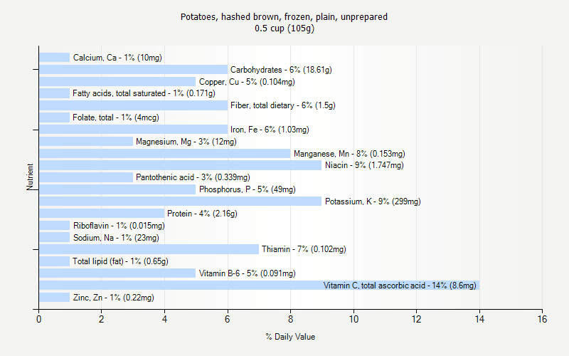 Alanine 0.075 gArginine 0.103 gAsh 0.79 gAspartic acid 0.502 gCalcium, Ca 10 mgCarbohydrate, by difference 18.61 gCopper, Cu 0.104 mgCystine 0.014 gEnergy 360 kjEnergy 86 kcalFatty acids, total monounsaturated 0.015 gFatty acids, total polyunsaturated 0.282 gFatty acids, total saturated 0.171 gFiber, total dietary 1.5 gFluoride, F 45.9 mcgFolate, DFE 4 mcg_DFEFolate, food 4 mcgFolate, total 4 mcgFolic acid 0 mcgGlutamic acid 0.338 gGlycine 0.079 gHistidine 0.037 gIron, Fe 1.03 mgIsoleucine 0.093 gLeucine 0.130 gLysine 0.116 gMagnesium, Mg 12 mgManganese, Mn 0.153 mgMethionine 0.024 gNiacin 1.747 mgPantothenic acid 0.339 mgPhenylalanine 0.092 gPhosphorus, P 49 mgPotassium, K 299 mgProline 0.069 gProtein 2.16 gRetinol 0 mcgRiboflavin 0.015 mgSelenium, Se 0.3 mcgSerine 0.078 gSodium, Na 23 mgThiamin 0.102 mgThreonine 0.099 gTotal lipid (fat) 0.65 gTryptophan 0.029 gTyrosine 0.055 gValine 0.110 gVitamin A, IU 0 IUVitamin A, RAE 0 mcg_RAEVitamin B-12 0.00 mcgVitamin B-6 0.091 mgVitamin C, total ascorbic acid 8.6 mgWater 82.79 gZinc, Zn 0.22 mg10:0 0.004 g12:0 0.022 g14:0 0.004 g16:0 0.107 g16:1 undifferentiated 0.005 g18:0 0.023 g18:1 undifferentiated 0.007 g18:2 undifferentiated 0.211 g18:3 undifferentiated 0.067 g