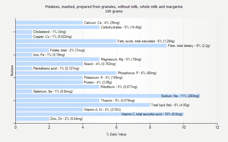Alanine 0.149 gArginine 0.174 gAsh 2.39 gAspartic acid 0.533 gCalcium, Ca 74 mgCarbohydrate, by difference 30.24 gCarotene, beta 101 mcgCholesterol 6 mgCopper, Cu 0.046 mgCystine 0.046 gEnergy 227 kcalEnergy 949 kjFatty acids, total monounsaturated 4.286 gFatty acids, total polyunsaturated 2.862 gFatty acids, total saturated 2.696 gFiber, total dietary 4.6 gFolate, DFE 15 mcg_DFEFolate, food 15 mcgFolate, total 15 mcgFolic acid 0 mcgGlutamic acid 0.819 gGlycine 0.111 gHistidine 0.107 gIron, Fe 0.40 mgIsoleucine 0.231 gLeucine 0.363 gLysine 0.309 gMagnesium, Mg 40 mgManganese, Mn 0.006 mgMethionine 0.084 gNiacin 1.602 mgPantothenic acid 0.267 mgPhenylalanine 0.202 gPhosphorus, P 126 mgPhytosterols 29 mgPotassium, K 304 mgProline 0.311 gProtein 4.30 gRetinol 84 mcgRiboflavin 0.162 mgSelenium, Se 1.0 mcgSerine 0.208 gSodium, Na 552 mgThiamin 0.166 mgThreonine 0.189 gTotal lipid (fat) 10.35 gTryptophan 0.048 gTyrosine 0.191 gValine 0.271 gVitamin A, IU 447 IUVitamin A, RAE 92 mcg_RAEVitamin B-12 0.00 mcgVitamin B-6 0.021 mgVitamin C, total ascorbic acid 12.6 mgWater 162.71 gZinc, Zn 0.50 mg10:0 0.040 g12:0 0.050 g14:0 0.183 g16:0 1.493 g16:1 undifferentiated 0.038 g18:0 0.836 g18:1 undifferentiated 4.248 g18:2 undifferentiated 2.701 g18:3 undifferentiated 0.160 g18:4 0.000 g20:1 0.000 g20:4 undifferentiated 0.000 g20:5 n-3 0.000 g22:1 undifferentiated 0.000 g22:5 n-3 0.000 g22:6 n-3 0.000 g4:0 0.048 g6:0 0.029 g8:0 0.017 g