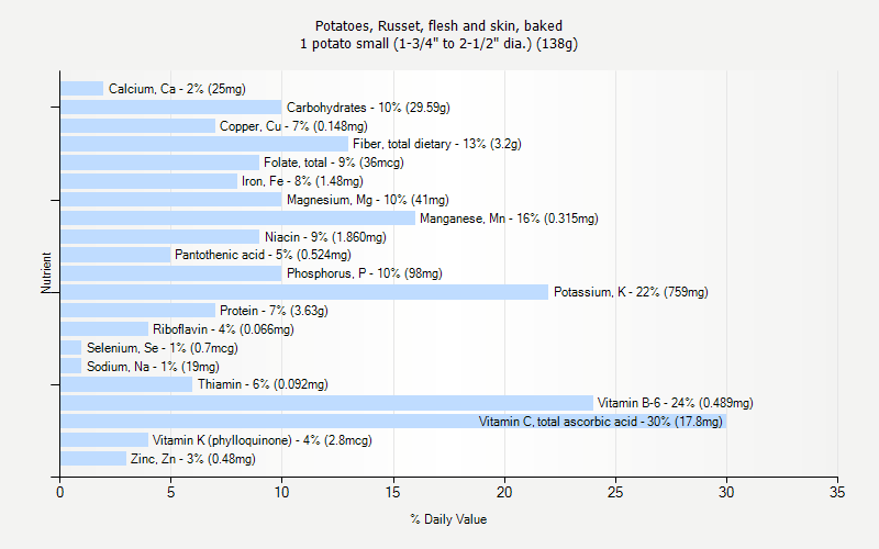 Complete Nutrition for 1 potato large (3" to 4-1/4" dia. (299g)