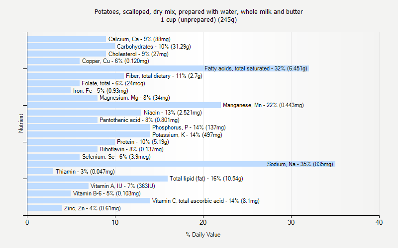 Alcohol, ethyl 0.0 gAsh 4.02 gCalcium, Ca 88 mgCarbohydrate, by difference 31.29 gCholesterol 27 mgCopper, Cu 0.120 mgEnergy 953 kjEnergy 228 kcalFatty acids, total monounsaturated 2.972 gFatty acids, total polyunsaturated 0.475 gFatty acids, total saturated 6.451 gFiber, total dietary 2.7 gFolate, DFE 24 mcg_DFEFolate, food 24 mcgFolate, total 24 mcgFolic acid 0 mcgIron, Fe 0.93 mgMagnesium, Mg 34 mgManganese, Mn 0.443 mgNiacin 2.521 mgPantothenic acid 0.801 mgPhosphorus, P 137 mgPotassium, K 497 mgProtein 5.19 gRetinol 81 mcgRiboflavin 0.137 mgSelenium, Se 3.9 mcgSodium, Na 835 mgThiamin 0.047 mgTotal lipid (fat) 10.54 gVitamin A, IU 363 IUVitamin A, RAE 86 mcg_RAEVitamin B-12 0.00 mcgVitamin B-6 0.103 mgVitamin C, total ascorbic acid 8.1 mgWater 193.97 gZinc, Zn 0.61 mg10:0 0.260 g12:0 0.296 g14:0 1.036 g16:0 2.742 g16:1 undifferentiated 0.230 g18:0 1.259 g18:1 undifferentiated 2.587 g18:2 undifferentiated 0.299 g18:3 undifferentiated 0.174 g18:4 0.000 g20:1 0.000 g20:4 undifferentiated 0.000 g20:5 n-3 0.000 g22:1 undifferentiated 0.000 g22:5 n-3 0.000 g22:6 n-3 0.000 g4:0 0.331 g6:0 0.196 g8:0 0.113 g