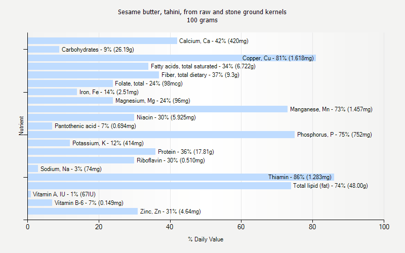 Alanine 0.140 gArginine 0.396 gAsh 0.75 gAspartic acid 0.248 gCalcium, Ca 63 mgCarbohydrate, by difference 3.93 gCholesterol 0 mgCopper, Cu 0.243 mgCystine 0.054 gEnergy 358 kjEnergy 86 kcalFatty acids, total monounsaturated 2.719 gFatty acids, total polyunsaturated 3.156 gFatty acids, total saturated 1.008 gFiber, total dietary 1.4 gFolate, DFE 15 mcg_DFEFolate, food 15 mcgFolate, total 15 mcgFolic acid 0 mcgGlutamic acid 0.596 gGlycine 0.183 gHistidine 0.079 gIron, Fe 0.38 mgIsoleucine 0.115 gLeucine 0.205 gLysine 0.086 gMagnesium, Mg 14 mgManganese, Mn 0.219 mgMethionine 0.088 gNiacin 0.889 mgPantothenic acid 0.104 mgPhenylalanine 0.142 gPhosphorus, P 113 mgPotassium, K 62 mgProline 0.122 gProtein 2.67 gRetinol 0 mcgRiboflavin 0.076 mgSerine 0.146 gSodium, Na 11 mgThiamin 0.192 mgThreonine 0.111 gTotal lipid (fat) 7.20 gTryptophan 0.058 gTyrosine 0.112 gValine 0.149 gVitamin A, IU 10 IUVitamin A, RAE 0 mcg_RAEVitamin B-12 0.00 mcgVitamin B-6 0.022 mgVitamin C, total ascorbic acid 0.0 mgWater 0.45 gZinc, Zn 0.70 mg14:0 0.018 g16:0 0.644 g16:1 undifferentiated 0.022 g18:0 0.303 g18:1 undifferentiated 2.685 g18:2 undifferentiated 3.098 g18:3 undifferentiated 0.054 g20:1 0.010 g
