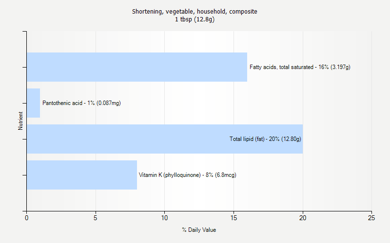 Alcohol, ethyl 0.0 gAsh 0.06 gBeta-sitosterol 283 mgCaffeine 0 mgCalcium, Ca 2 mgCampesterol 102 mgCarbohydrate, by difference 0.00 gCarotene, alpha 0 mcgCarotene, beta 0 mcgCholesterol 0 mgCholine, total 0.4 mgCopper, Cu 0.000 mgCryptoxanthin, beta 0 mcgEnergy 1812 kcalEnergy 7581 kjFatty acids, total monounsaturated 84.431 gFatty acids, total polyunsaturated 57.599 gFatty acids, total saturated 51.209 gFatty acids, total trans 26.986 gFatty acids, total trans-monoenoic 22.072 gFatty acids, total trans-polyenoic 4.914 gFiber, total dietary 0.0 gFolate, DFE 0 mcg_DFEFolate, food 0 mcgFolate, total 0 mcgFolic acid 0 mcgIron, Fe 0.14 mgLutein + zeaxanthin 0 mcgLycopene 0 mcgMagnesium, Mg 0 mgManganese, Mn 0.000 mgNiacin 0.000 mgPantothenic acid 1.394 mgPhosphorus, P 0 mgPotassium, K 0 mgProtein 0.00 gRetinol 0 mcgRiboflavin 0.000 mgSelenium, Se 0.0 mcgSodium, Na 8 mgStigmasterol 105 mgSugars, total 0.00 gTheobromine 0 mgThiamin 0.041 mgTocopherol, beta 0.00 mgTocopherol, delta 34.19 mgTocopherol, gamma 60.35 mgTotal lipid (fat) 204.94 gVitamin A, IU 0 IUVitamin A, RAE 0 mcg_RAEVitamin B-12 0.00 mcgVitamin B-12, added 0.00 mcgVitamin B-6 0.002 mgVitamin C, total ascorbic acid 0.0 mgVitamin E (alpha-tocopherol) 1.64 mgVitamin E, added 0.00 mgVitamin K (phylloquinone) 109.1 mcgWater 0.00 gZinc, Zn 0.00 mg10:0 0.000 g12:0 0.000 g14:0 0.342 g14:1 0.000 g16:0 25.543 g16:1 undifferentiated 0.043 g17:0 0.195 g18:0 23.395 g18:1 c 62.133 g18:1 t 22.072 g18:1 undifferentiated 84.206 g18:2 CLAs 0.117 g18:2 i 4.914 g18:2 n-6 c,c 48.708 g18:2 undifferentiated 53.737 g18:3 n-3 c,c,c 3.860 g18:3 undifferentiated 3.860 g18:4 0.000 g20:0 0.877 g20:1 0.180 g20:4 undifferentiated 0.000 g20:5 n-3 0.000 g22:0 0.752 g22:1 undifferentiated 0.000 g22:5 n-3 0.000 g22:6 n-3 0.000 g24:0 0.107 g24:1 c 0.000 g4:0 0.000 g6:0 0.000 g8:0 0.000 g