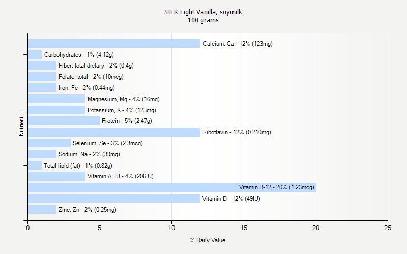 % Daily Value for SILK Light Vanilla, soymilk 100 grams